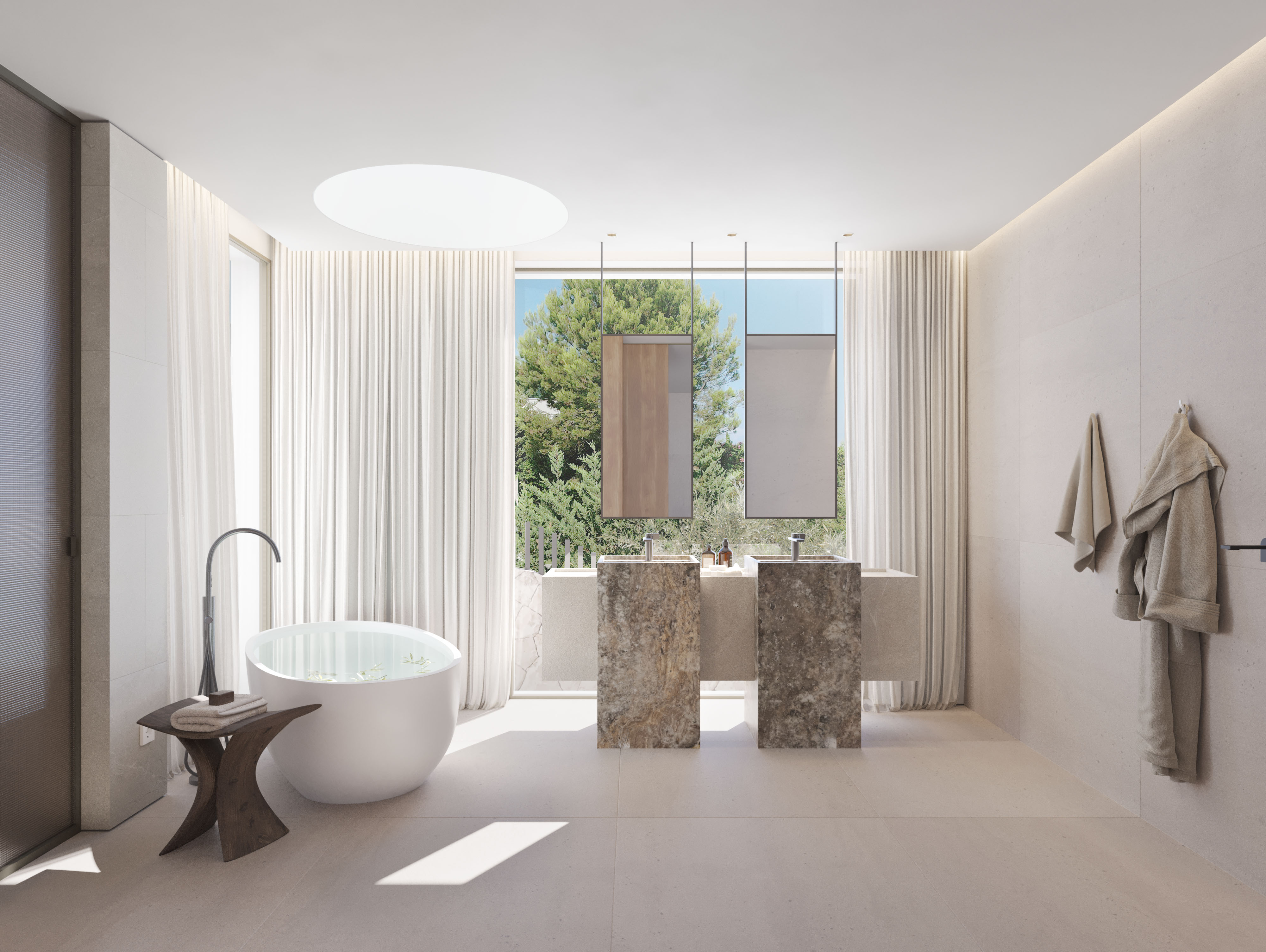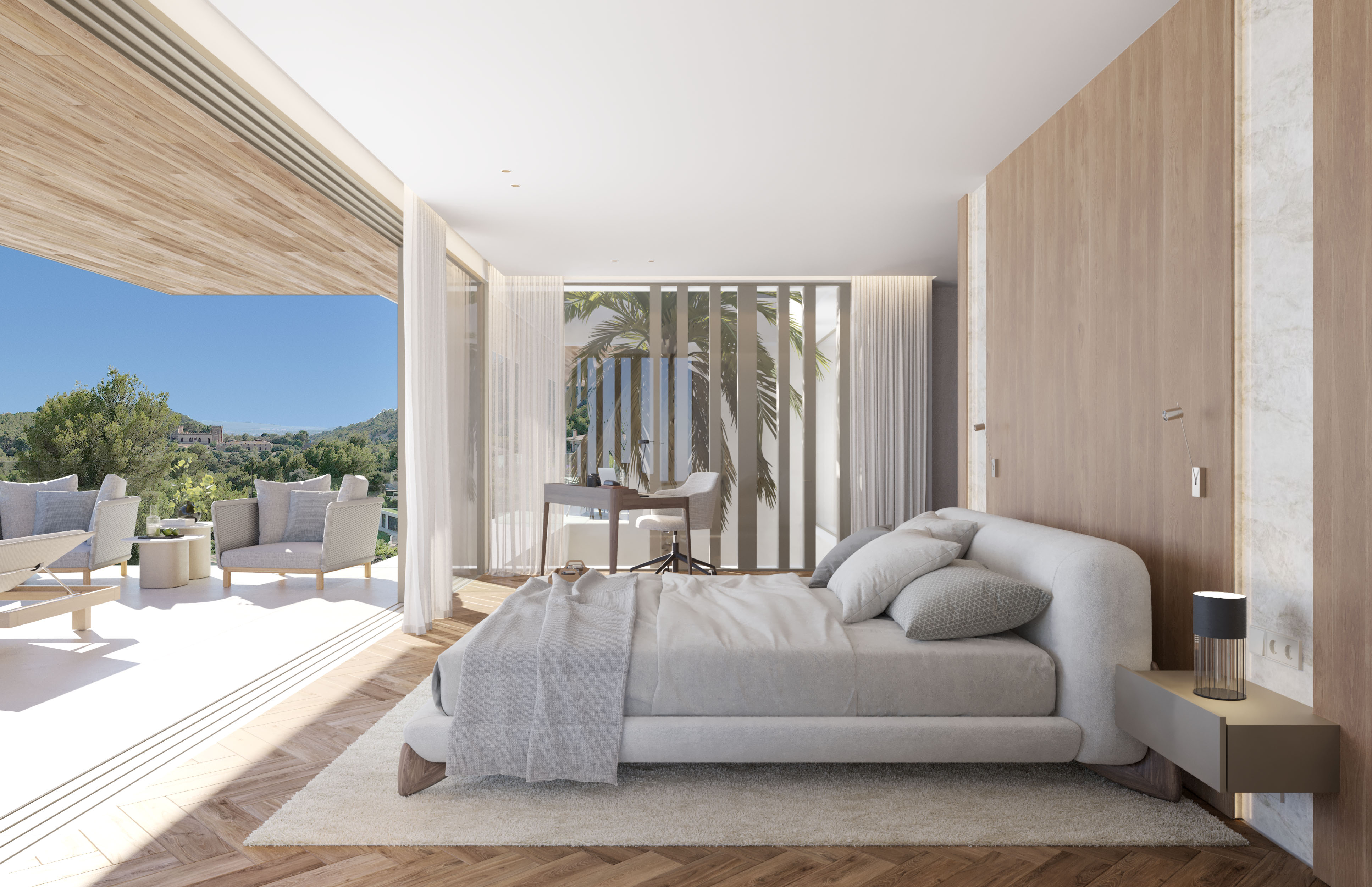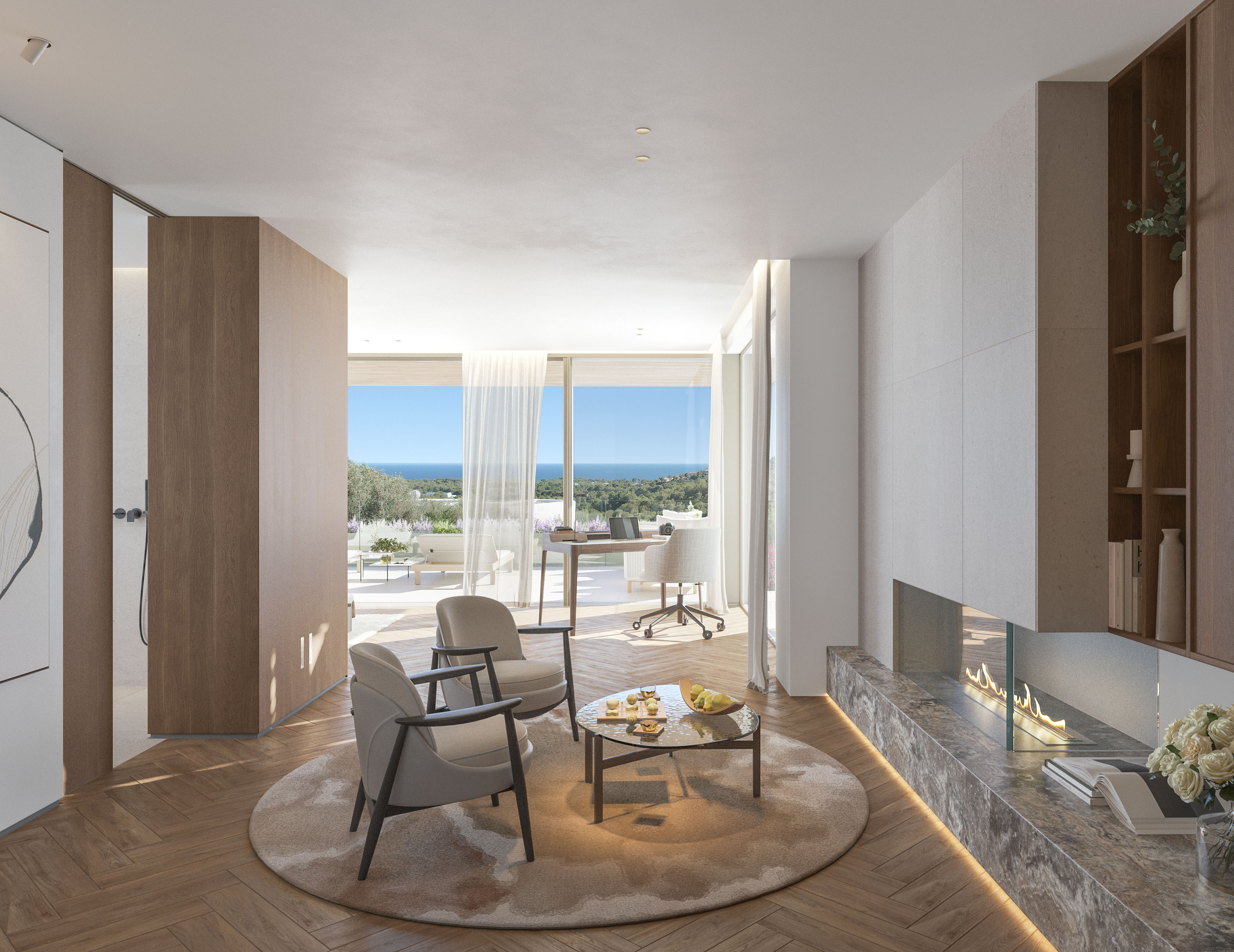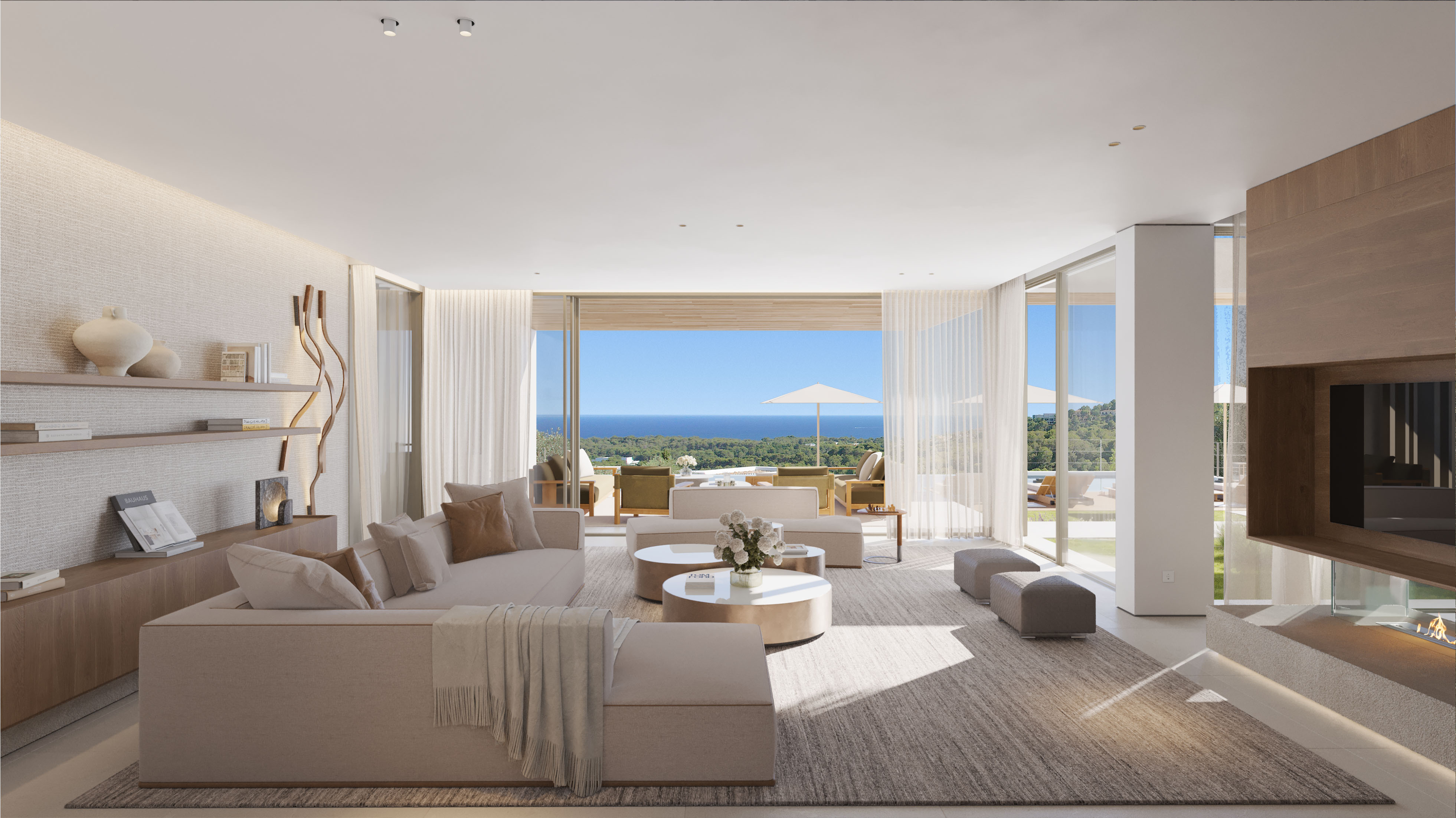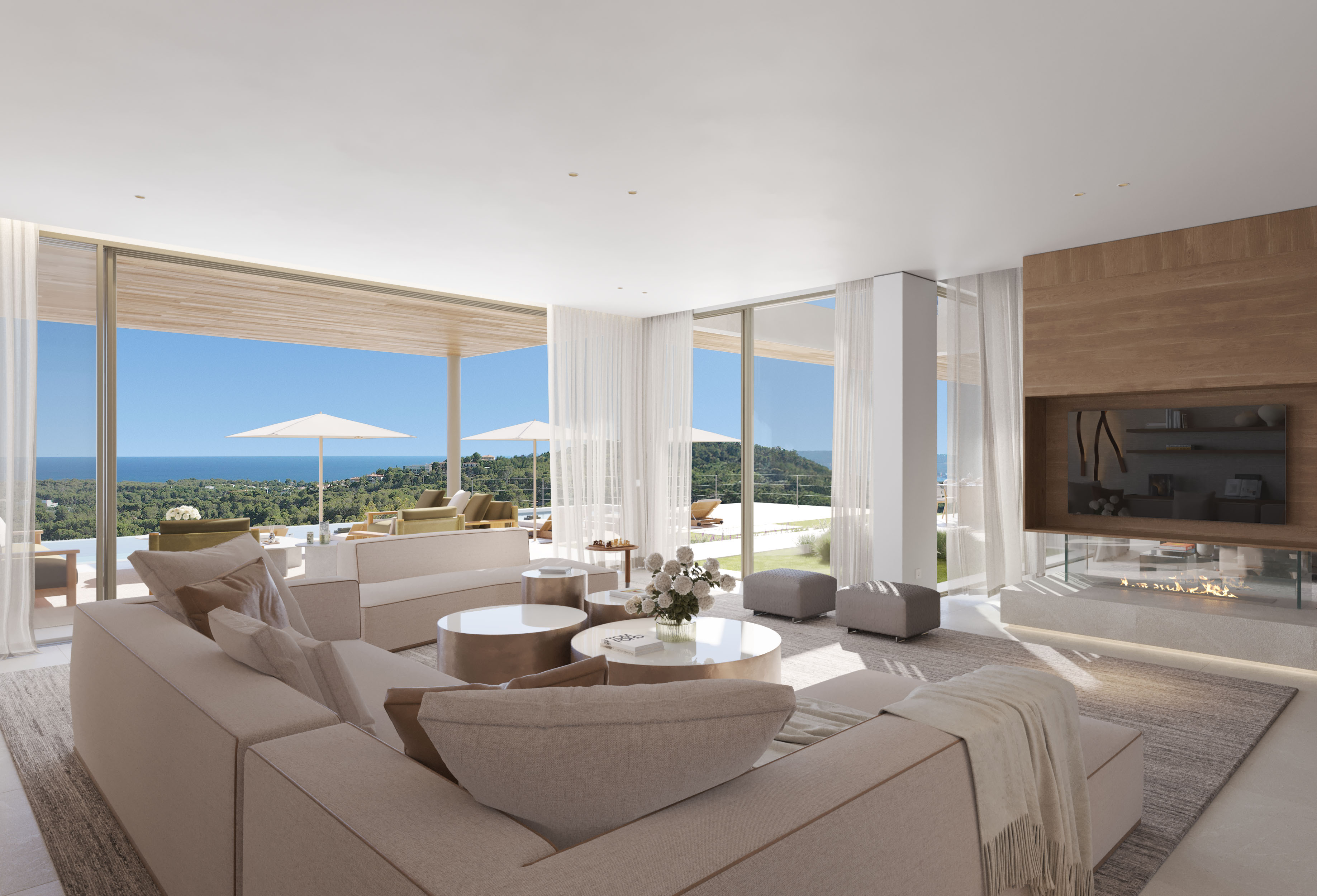 Die Villa Sa Maga vereint auf beeindruckende Weise Luxus und Nachhaltigkeit - eine harmonische Symbiose aus zeitloser Architektur, traditioneller spanischer Baukunst, regionalen Materialien und modernster Technologie. Besonders hervorzuheben ist der atemberaubende Panoramablick über die Bucht, den das Anwesen auf einem 2.144 m² großen Grundstück bietet. Diese Aussicht bildet eine eindrucksvolle Kulisse für den fließenden Übergang zwischen Innen- und Außenbereich, der das architektonische Konzept prägt.