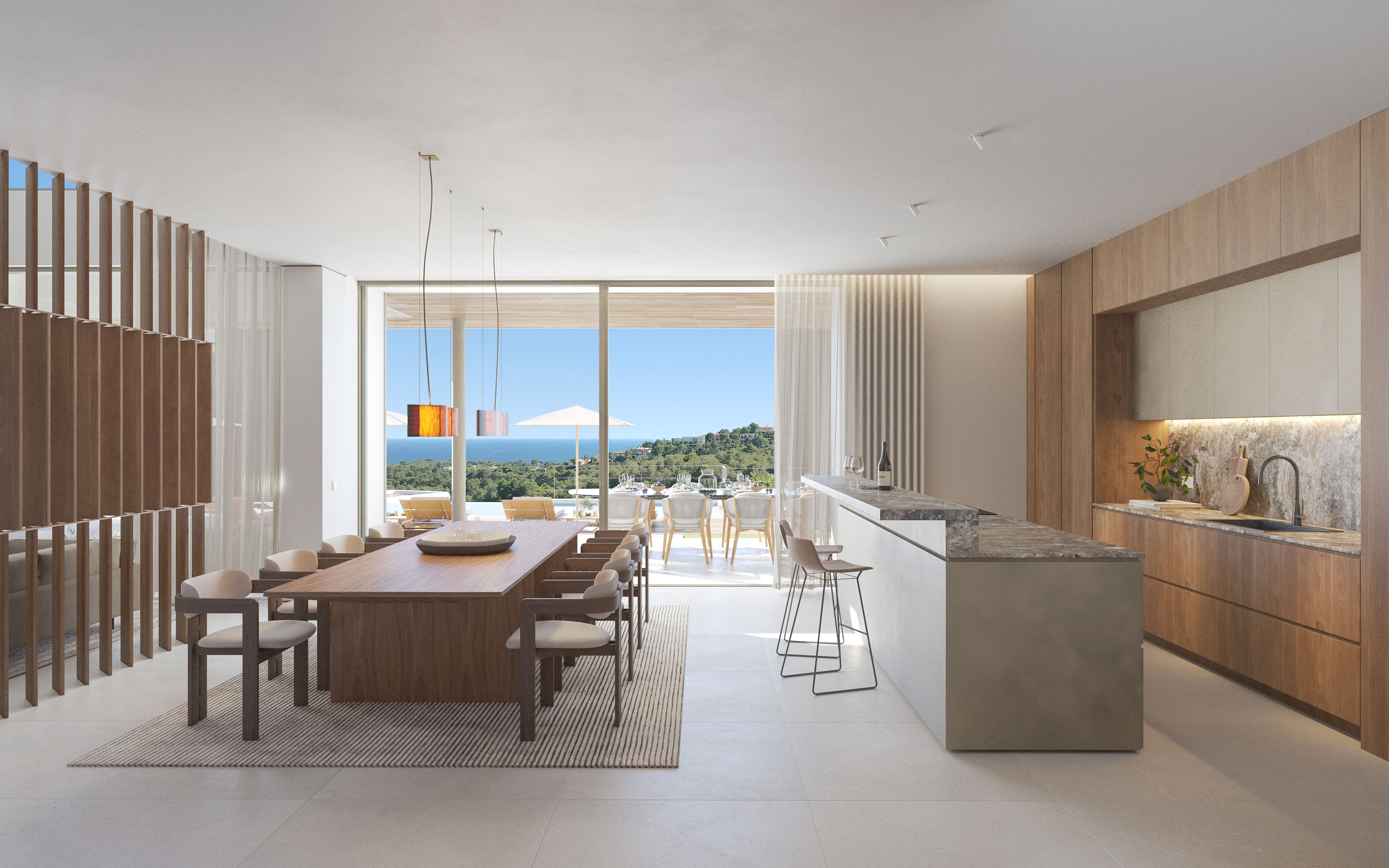 Die Innenausstattung der Neubauvilla besticht bis ins Detail durch höchste Qualität und ein zeitloses Designkonzept. In den großzügigen Räumlichkeiten wurden nur edelste Materialien verwendet, die mit höchster Präzision und Sorgfalt verarbeitet wurden.Die Küche der Villa setzt Maßstäbe für höchste Ansprüche: Die ausgewählten Geräte sind nicht nur funktional, sondernauch harmonisch und ästhetisch perfekt in das Gesamtkonzept integriert. Jeder Raum der Villa strahlt eine zeitlose Eleganz aus, die durch das Können lokaler Handwerker in Kombination mit deutscher Präzision zur Perfektion gebracht wurde. Die Villa Sa Maga steht nicht nur für Luxus und Nachhaltigkeit, sondern ist auch ein herausragendes Beispiel für handwerkliche Meisterleistung und raffinierte Innenarchitektur.