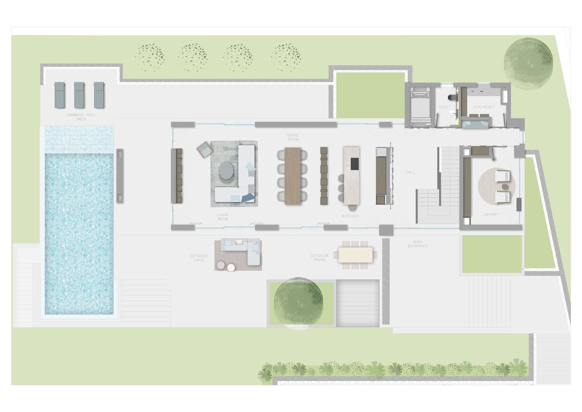 Das Anwesen verfügt über alle Annehmlichkeiten, die es für eine außergewöhnliche Luxusimmobilie braucht – vom hauseigenen Fahrstuhl bis auf die Dachterrasse, über einen Infinity-Pool mit Barbecue-Bereich bis hin zur Fußbodenheizung mit Kühlungsfunktion. Für einen weitgehend CO2-neutralen Betrieb mit regenerativen Energien sorgen die intelligente Bauweise und modernste Technologien – übrigens per Smart-Home-Technik ganz einfach zu steuern.